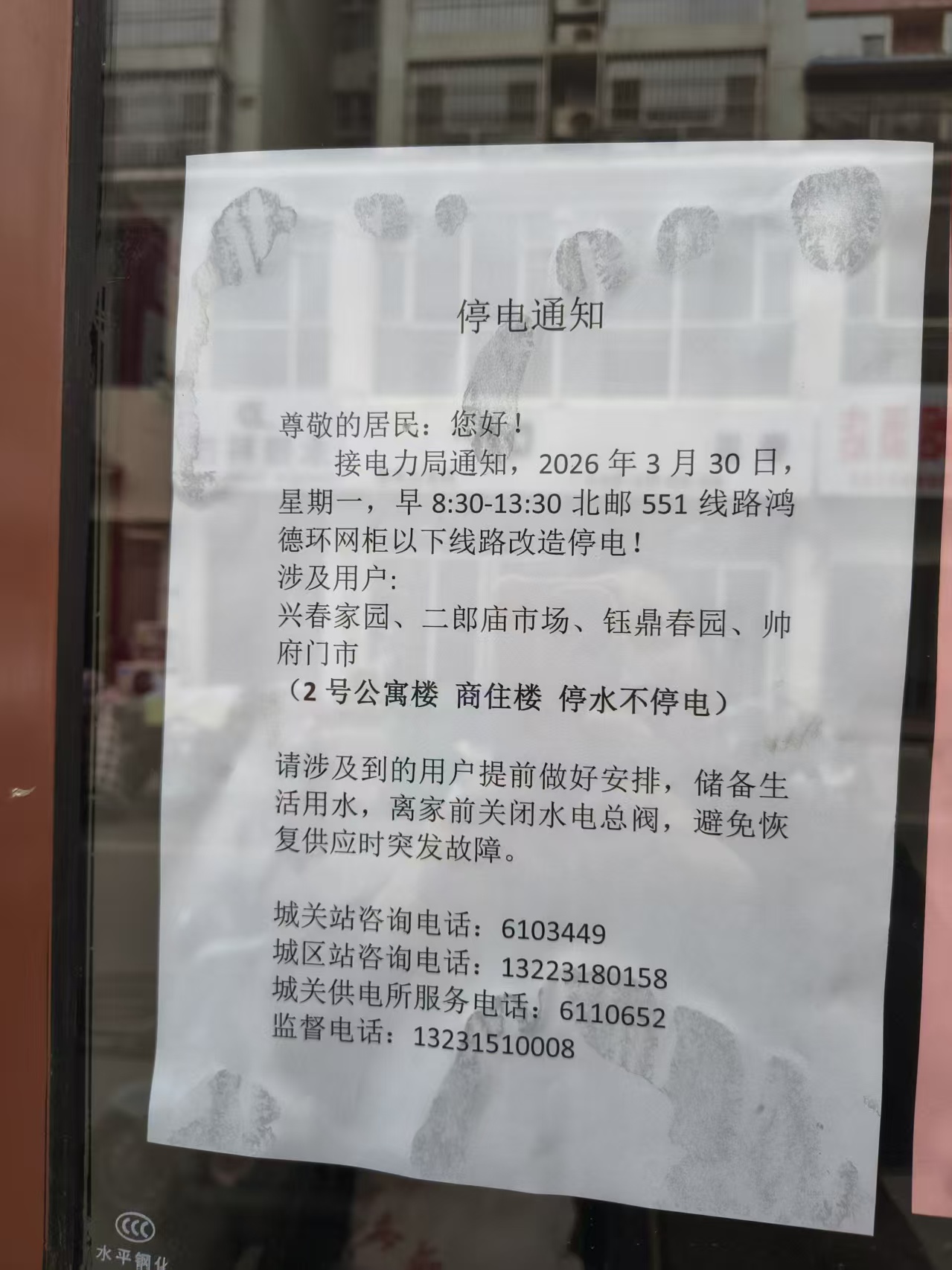 玉田停水停电通知:兴春家园、二郎庙市场、钰鼎春园、帅.